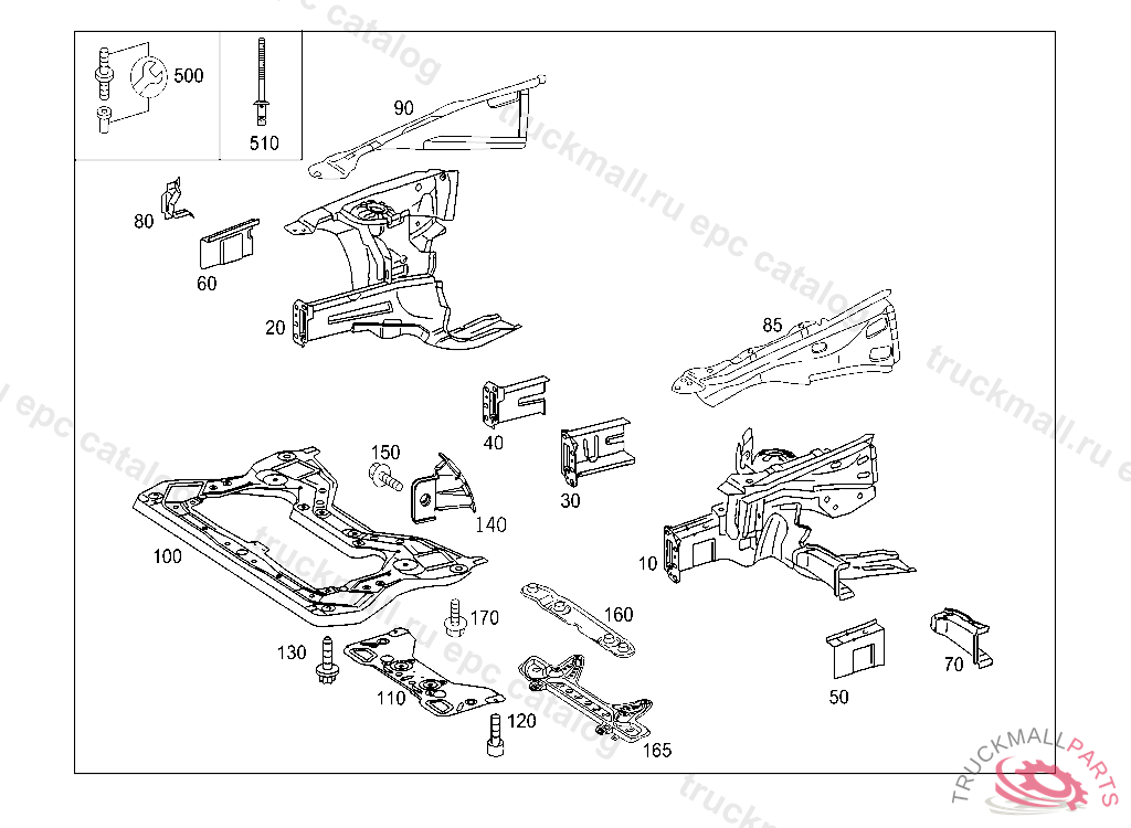SUPPORT TOP LEFT FRAME SIDE RAIL, A 97500020070630808 E 02900020071206808