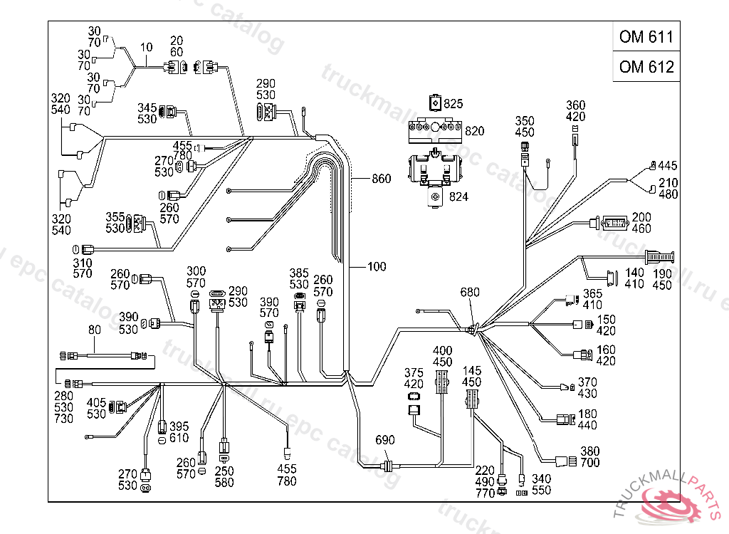 INSULATING SLEEVETO 000 546 83 40, A 218852 EXCEPT FOR A 103237 - A 218851 WITH CODE 030 F 190065 EXCEPT FOR F 159752 - F 190064 WITH CODE 030 AS OF IDENT-NO.: FOR HEADLAMP WIRING HARNESS REFER TO TU 54/121, WITH AIR CONDITIONER REFER TO TU 54/485 ALSO INSTALLED ON A 219847
