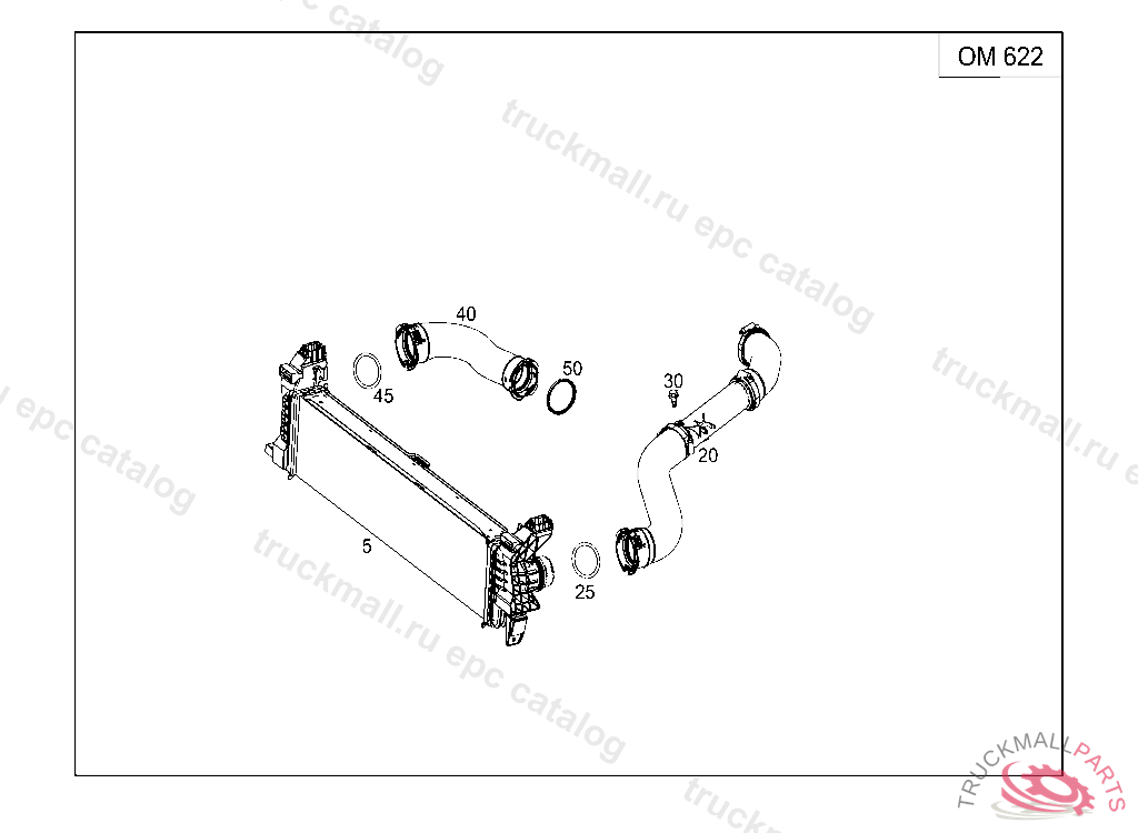 CHARGE AIR HOSE AT CHARGE AIR COOLER, RIGHT