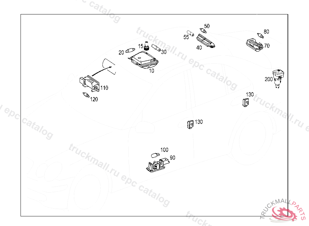INTERIOR LAMP WITH SLIDING ROOF AND EMERGENCY CALL SYSTEM, Replaced By: A2038205601