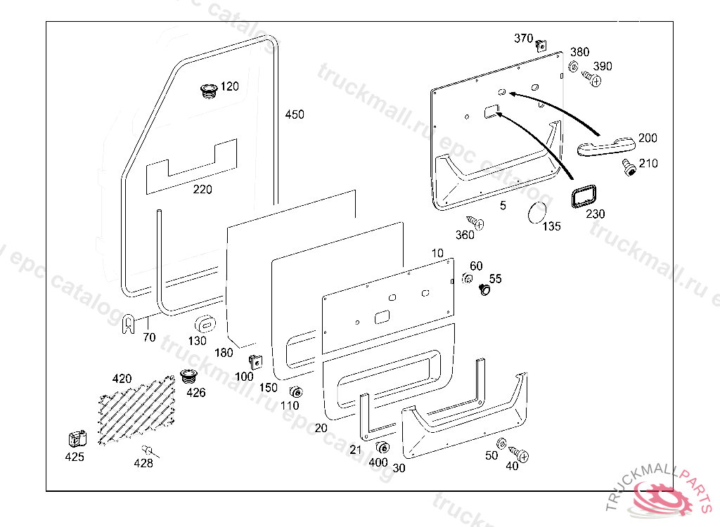 RUBBER SEAL REAR PANEL DOOR,TOP CENTRAL 280 MM, ORDER BY THE METER