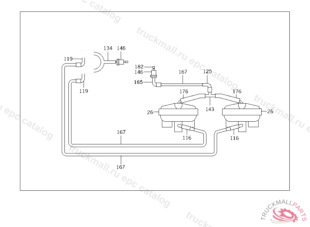 HOSE ENGINE TO REGENERATION VALVE RECHTS, F 125158 EXCEPT CODE 805 ALSO INSTALLED IN VEHICLE TO F 125157 WITH CODE 806