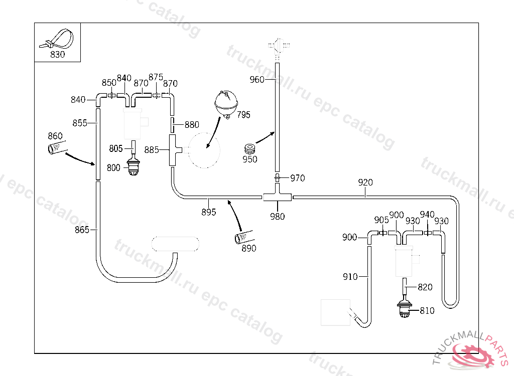HOSE FROM STEERING LOCK TO VACUUM PUMP LINE 830 MM