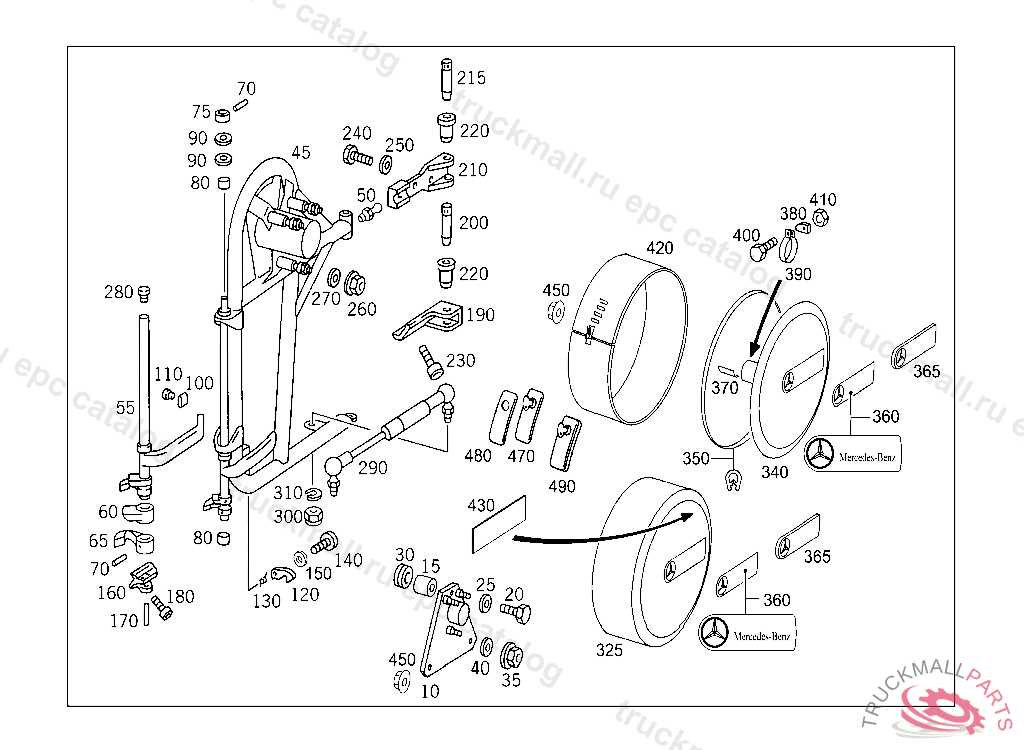 BEARING SPARE WHEEL CARRIER AT REAR END DOOR, BOTTOM