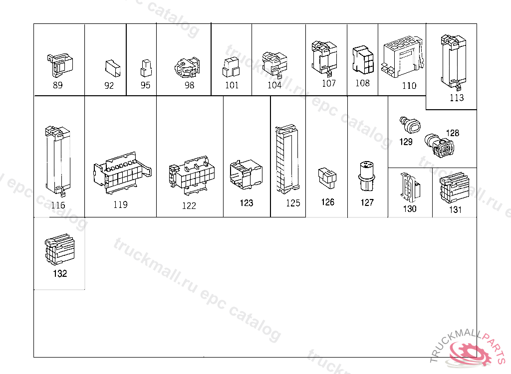 PIN BUSHING HOUSING. PLUG HOUSING FROM CHASSIS/CAB CONNECTION POINT TO TACHOGRAPH