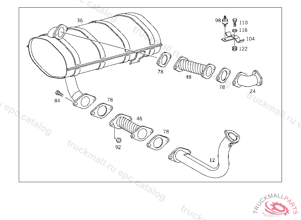 EXHAUST MUFFLER , FOR USE WITH MERCEDES-BENZ BODY UP TO IDENT NO.039438, FOR VEHICLES LESS MERCEDES-BENZ BODY UP TO IDENT NO.040793
