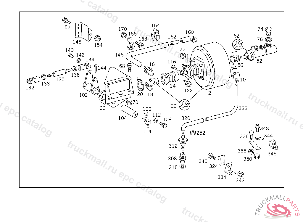 BRAKE BOOSTER ASSEMBLY , FROM CHASSIS 018154 ALSO INSTALLED ON 017661,017829 EXCEPT FOR 018155,018156,018159,018308,018310,018315,018317,018318,018327,018350,018355. EXHAUST STOCK OF OLD PARTS NUMBER FIRST UP TO CHASSIS 533350, Replaced By: A0024305630, +001A1262920074, +001N912011008000