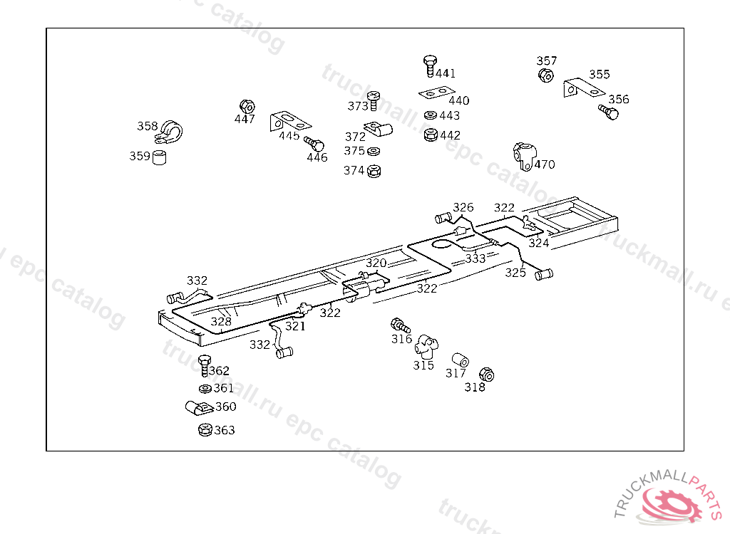 LINE FROM DISTRIBUTOR TO BRAKE HOSE ON REAR AXLE 415 MM,4 478330