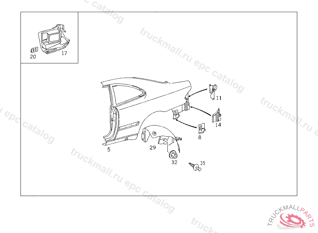 SIDE PANEL REAR OUTSIDE LEFT, ORDER ADDITIONALLY: 1 X 208 682 05 30 ISULATION LEFT