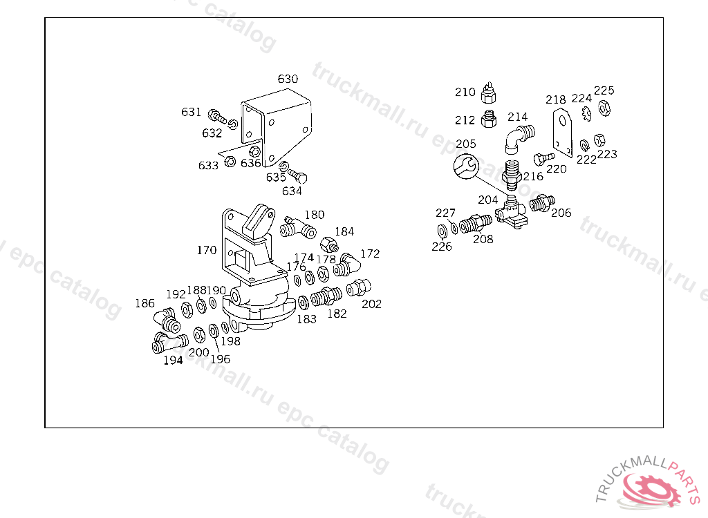 SCREW FITTING (AT INTAKE). FITTING , TO TANDEM BRAKE MASTER CYLINDERS 001 430 51 01 AND 001 430 68 01