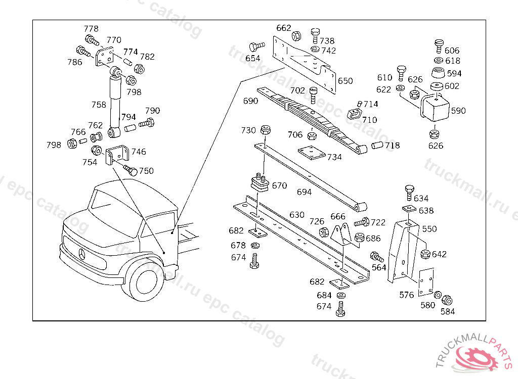 SCREW SPRING TO STRUT, MODEL 416,417 FOR USE WITH MEDIUM-LENGTH MERCEDES-BENZ CAB5 215244