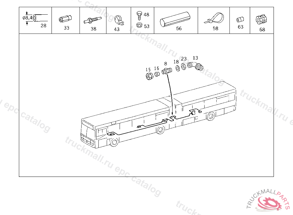 HOSE FROM PUMP TO DISTRIBUTOR AT FRONT AXLE, FROM IDENT NO. 068717 ALSO INSTALLED ON 068708,068814,068718,068731 EXCEPT FOR 068424,068462. ORDER BY THE METER