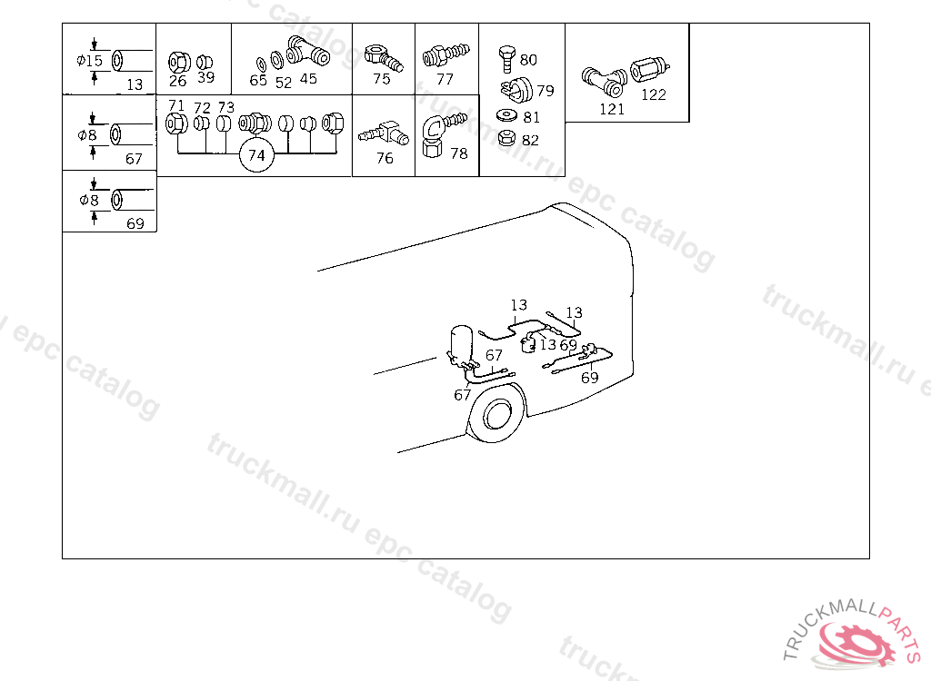 THRUST RING COMPRESSED AIR LINE TO AIR RESERVOIR AND TO T-FITTING
