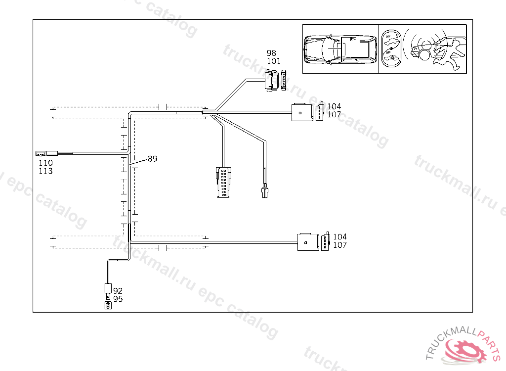 CABLE HARNESS INTERIOR SAFEGUARD, A 394036 EXCEPT CODE 807 ALSO INSTALLED IN VEHICLE TO A 394035 WITH CODE 808 A 698507 X 012425 EXCEPT CODE 809 ALSO INSTALLED IN VEHICLE FROM A 698508, X 012426 WITH CODE 808