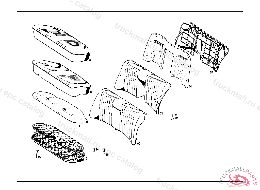 BUFFER REAR SEAT BENCH BACKREST FRAME MOUNTING, 016 UP TO CHASSIS 043198,018 UP TO CHASSIS 044203,019 UP TO CHASSIS 044488