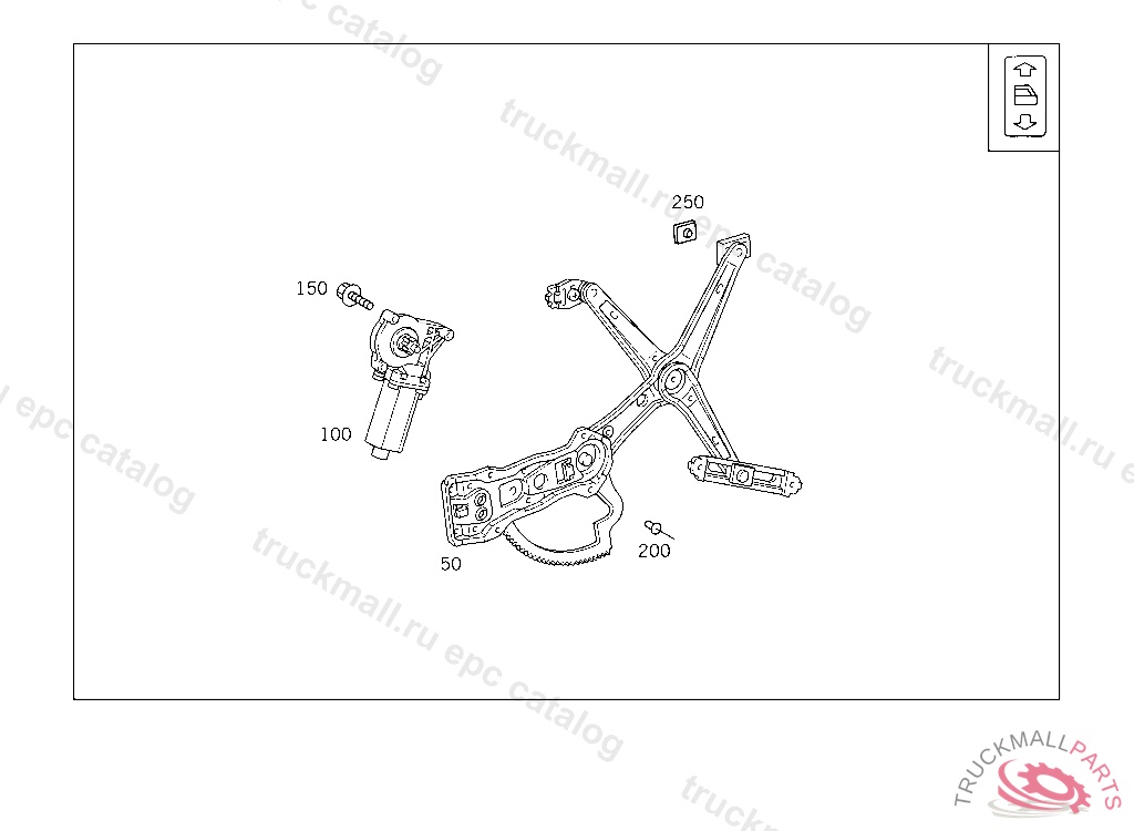 WINDOW REGULATOR RIGHT,ELECTRIC,LESS MOTOR, A 195030 X 000001