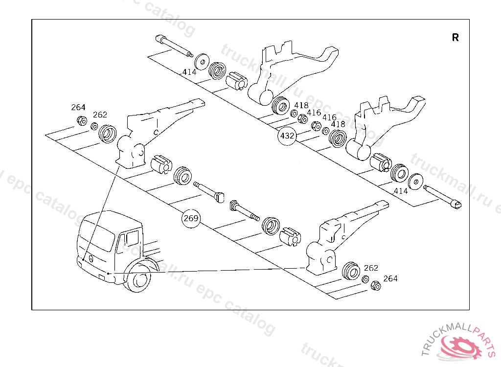 REPAIR KIT CAB SUSPENSION,FRONT, FOR USE WITH SHORT MERCEDES-BENZ CAB5 764324