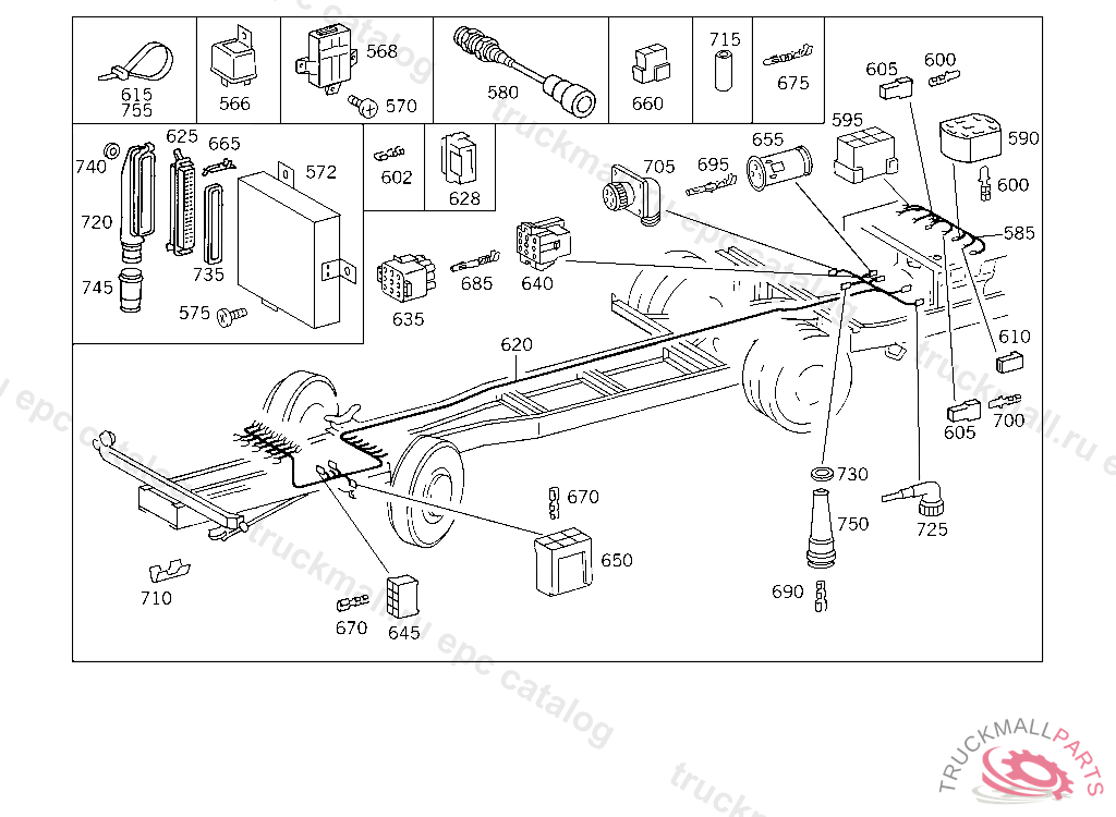 PIN BUSHING HOUSING. PLUG HOUSING FROM CHASSIS/CAB CONNECTION POINT TO TACHOGRAPH
