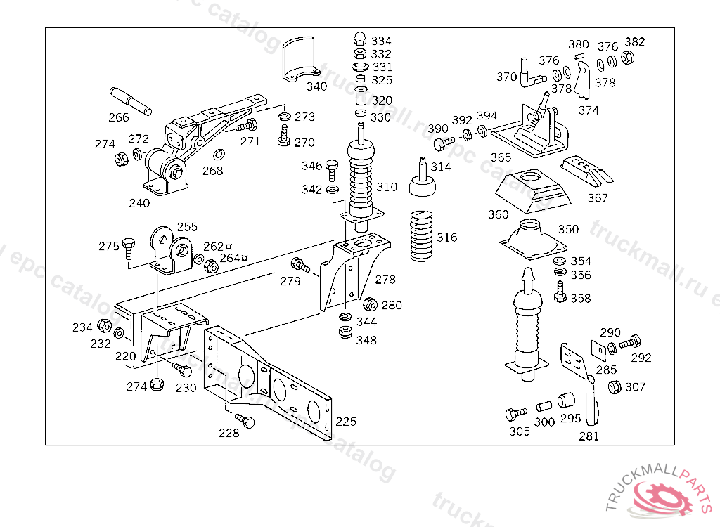 GUIDE CAB SUSPENSION,REAR RIGHT, 385.068,069 ON VEHICLES WITH DB CAB ONLY 385.019 FOR USE WITH SHORT MERCEDES-BENZ CAB5 204965