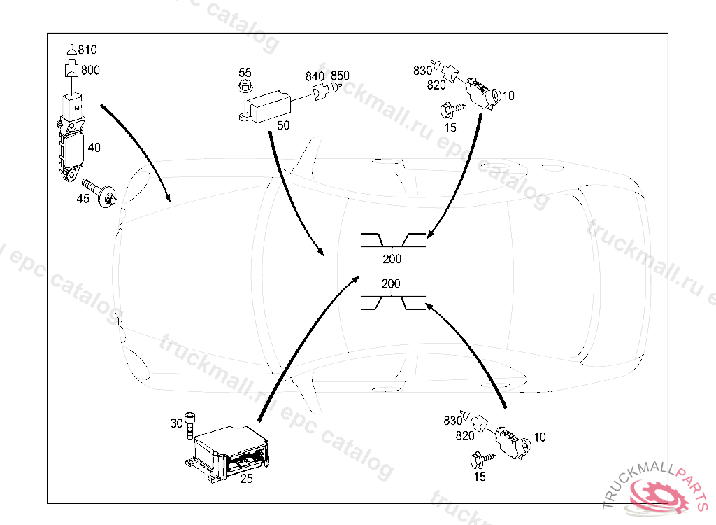 TRIGGER DEVICE AIRBAG CONTROL MODULE TO TUNNEL ROOF REINFORCEMENT BOSCH, A 07258620060228 FIRST EXHAUST STOCK OF OLD PARTS UP TO IDENT NO. A 15174120080930, Replaced By: A2118705885
