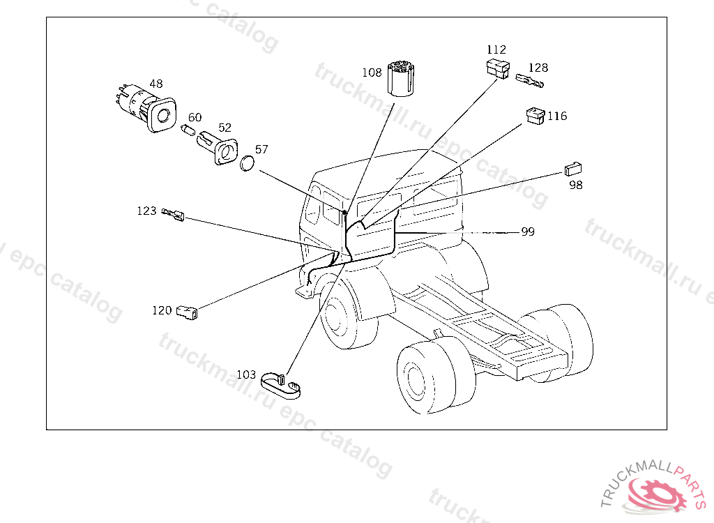 PIN BUSHING HOUSING. PLUG HOUSING FROM CHASSIS/CAB CONNECTION POINT TO TACHOGRAPH