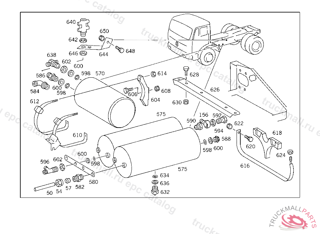 BASE AIR RESERVOIR,STRAP, 620.415 UP TO CHASSIS 5 014668 620.416 UP TO CHASSIS 5 000515 620.417 UP TO CHASSIS 4 972023
