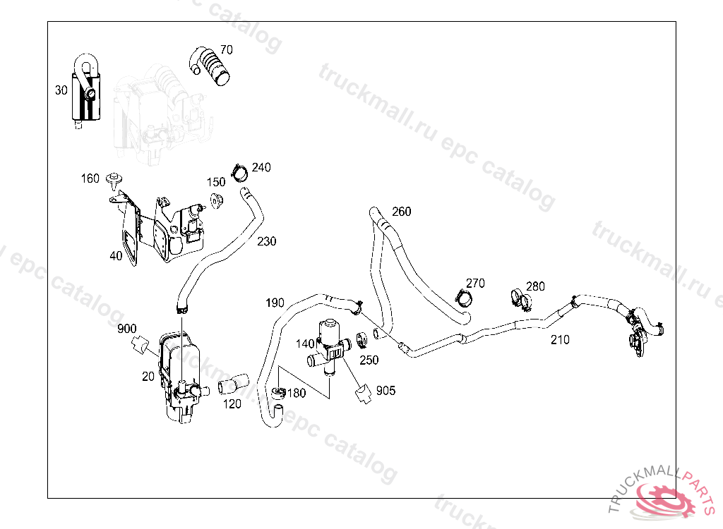 HEATING WATER LINE FROM MOLDED HOSE TO HEAT EXCHANGER