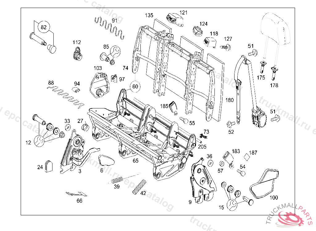 SEAT FRAMEWORK , 00009620020930 29703820070503 PLEASE ORDER IF BACKREST COVER IS TENSIONED WITH METAL BRACKET 9120QFT639A9007 BLACK DULL