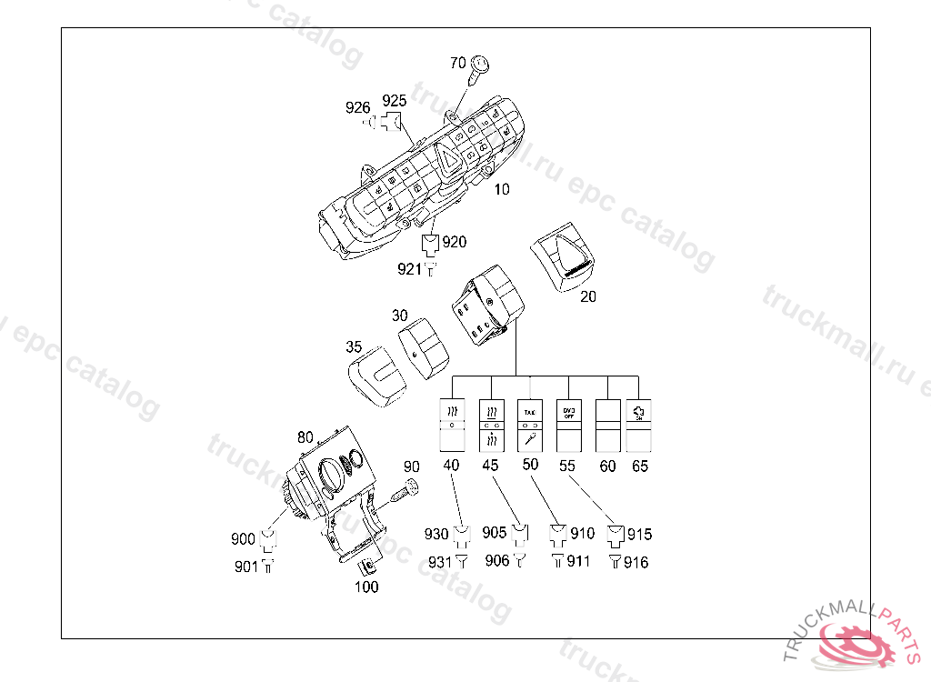 SWITCH UPPER CONTROL PANEL,360347120100906 TO BE ADAPTED DURING ASSEMBLY UNNEEDED SWITCH FUNCTIONS ARE TO BE COVERED WITH DUMMY COVERS A 639 820 01 12, A 639 820 05 12 AND A 639 820 06 12