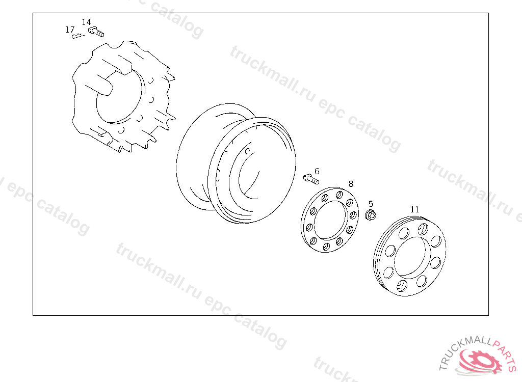 7. 001 MOUNTING PARTS USED FOR STEERED AXLE DISC WHEELS