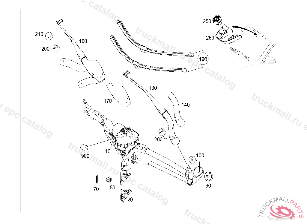 WIPER ARM DRIVER'S SIDE, A 10787020090930 L 00307920091031 V 00040920091031