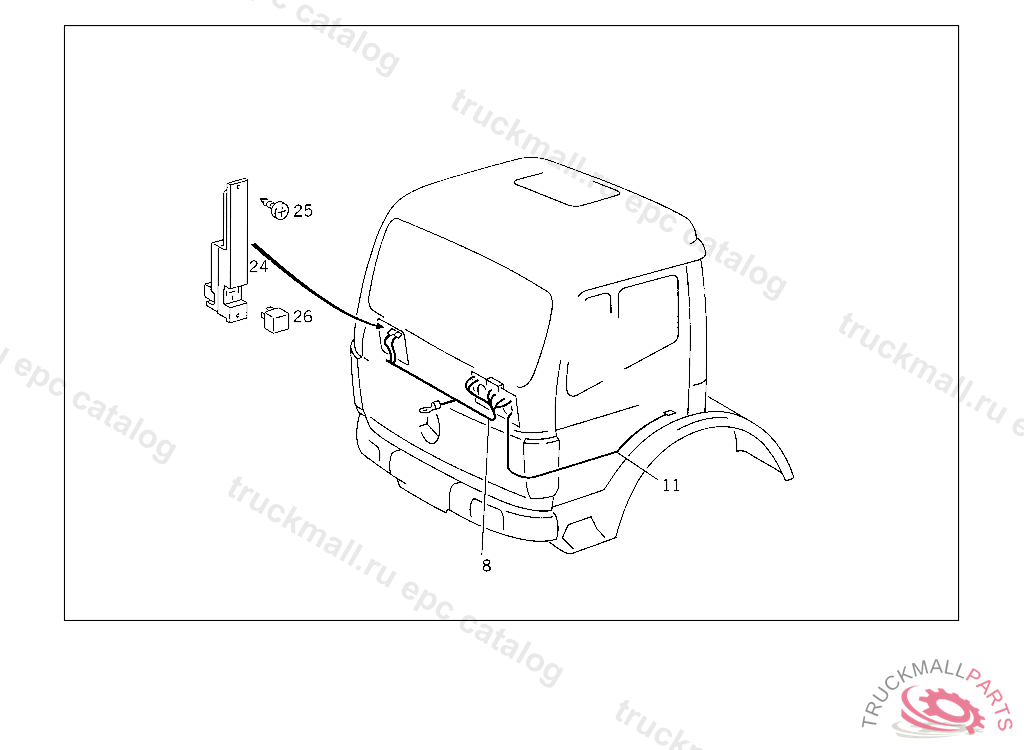 CABLE HARNESS FROM CHASSIS/CAB PLUG-CONNECTION TO TRAILING AXLE SOLENOID VALVE, THIS CABLE HARNESS IS A COMPONENT OF FRAME MOUNTED CABLE HARNESS ASSEMBLY AND CAN BE MADE AVAILABLE AS A SPARE ATTENTION: WHEN PLACING ORDERS, PLEASE QUOTE VEHICLE IDENT NO. ONLY IF FRAME MOUNTED CABLE HARNESS IS REQUIRED AS AN ASSEMBLY NOT USED