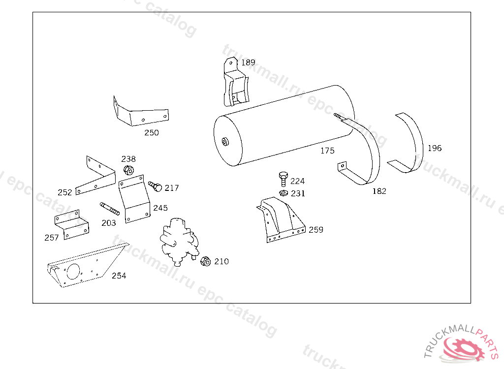 COMPRESSED AIR RESERVOIR. RESERVOIR6 L, TO VOSS 232, FOR VEHICLES WITH VOSS 230 CONNECTOR:ADD. MOUNT FITTING "A 004 997 82 72" WITH O-RING "A 000 987 04 46" AND THRUST RING "A 000 997 02 03" TO AIR RESERVOIR
