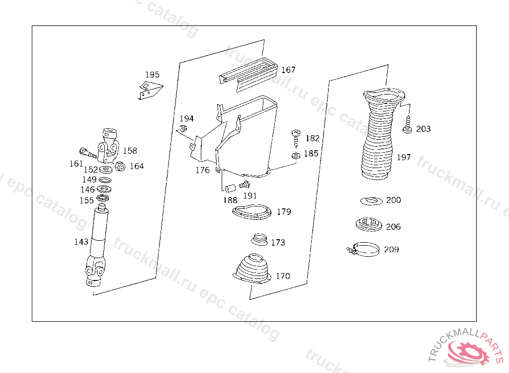 STEERING SHAFTLEMFOERDER, USED WITH SHORT MERCEDES-BENZ CAB