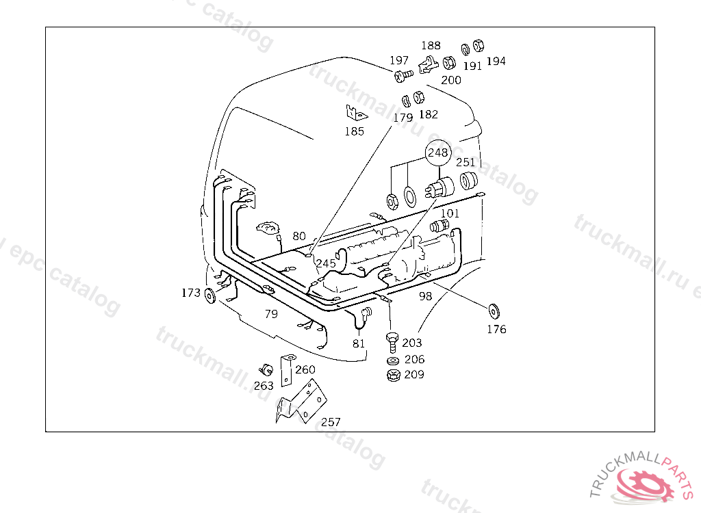 ELECTRIC CABLE FROM MODULE "M" TO ENGINE PLUG CONNECTION, THIS CABLE HARNESS IS A COMPONENT OF FRAME MOUNTED CABLE HARNESS ASSEMBLY AND CAN BE MADE AVAILABLE AS A SPARE ATTENTION: WHEN PLACING ORDERS, PLEASE QUOTE VEHICLE IDENT NO. ONLY IF FRAME MOUNTED CABLE HARNESS IS REQUIRED AS AN ASSEMBLYK 251256
