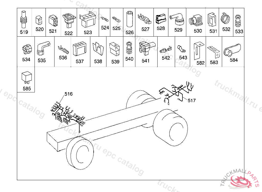 CABLE HARNESS FROM FRONT CABLE CONNECTOR TO REAR CABLE CONNECTOR,D 055166