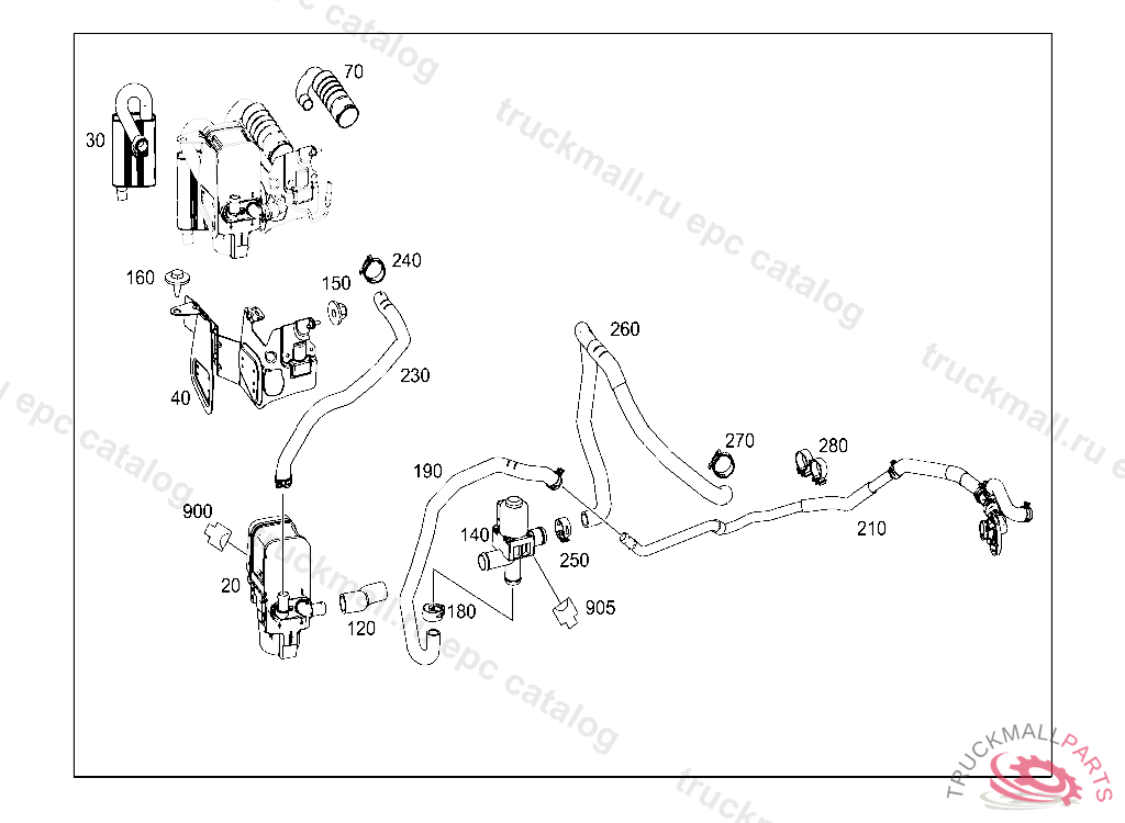 HEATING WATER LINE FROM MOLDED HOSE TO HEAT EXCHANGER