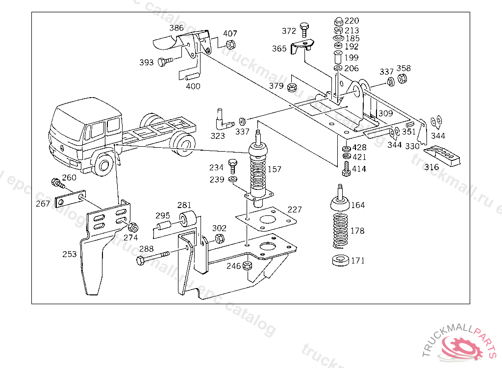 LEVER CAB SUSPENSION,FRONT RIGHT, FOR USE WITH SHORT VERSION OF MERCEDES-BENZ CAB
