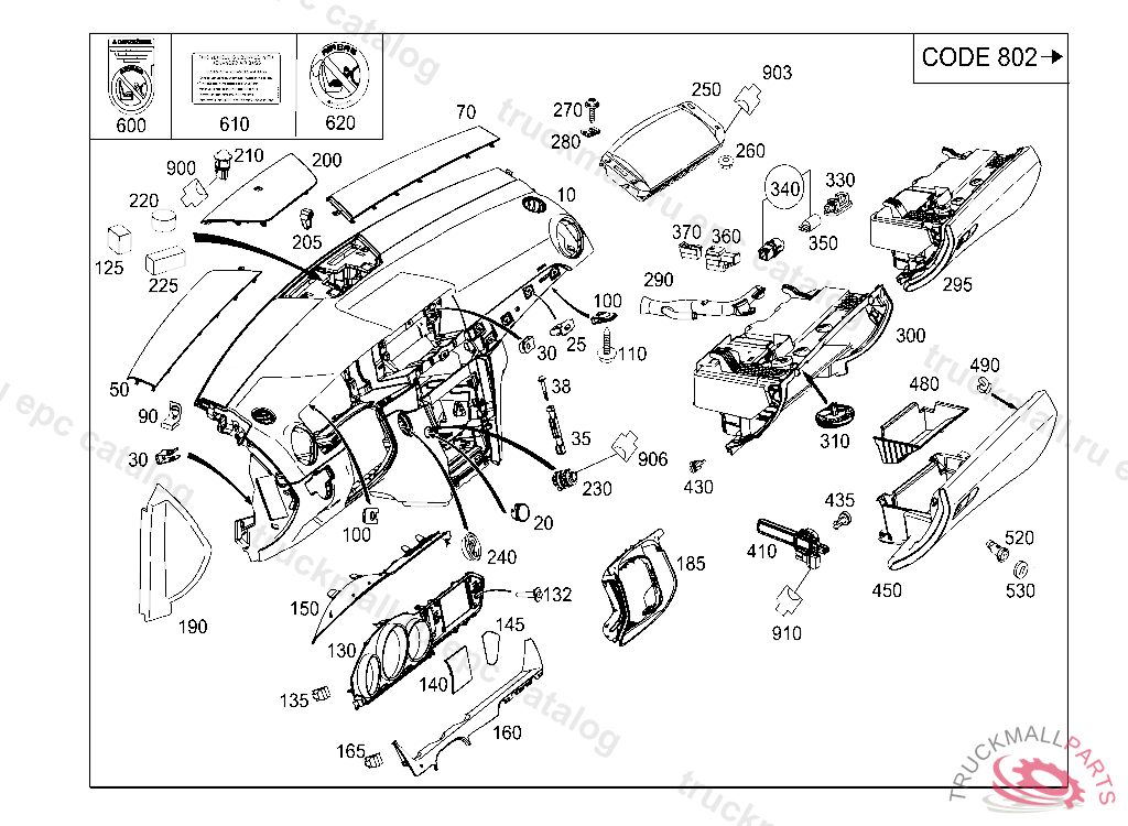 DAMPING GLOVE COMPARTMENT LID, Replaced By: A2046801126