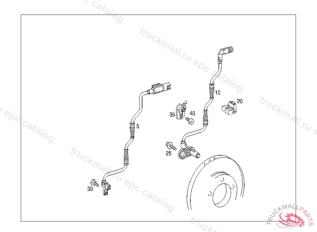 BRACKET WHEEL SPEED SENSOR AND BRAKE PAD INDICTOR ON FRONT AXLE, A 290167 EXCEPT CODE 805 ALSO INSTALLED IN VEHICLE TO A 290166 WITH CODE 806