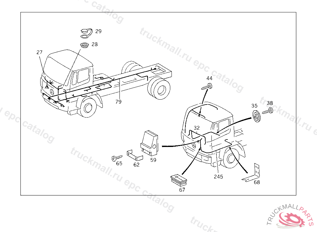 ELECTRIC CABLE FROM CAB PLUG-CONNECTION TO WASHER PUMP & TO CAB UNLOCKING MECHANISM