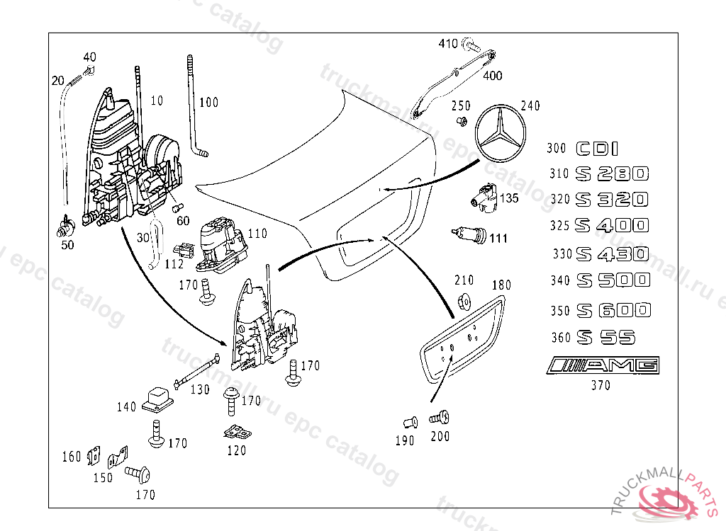 CATCH RIGHT, WITH TRUNK LID AUXILIARY LOCK, Replaced By: A2207501284