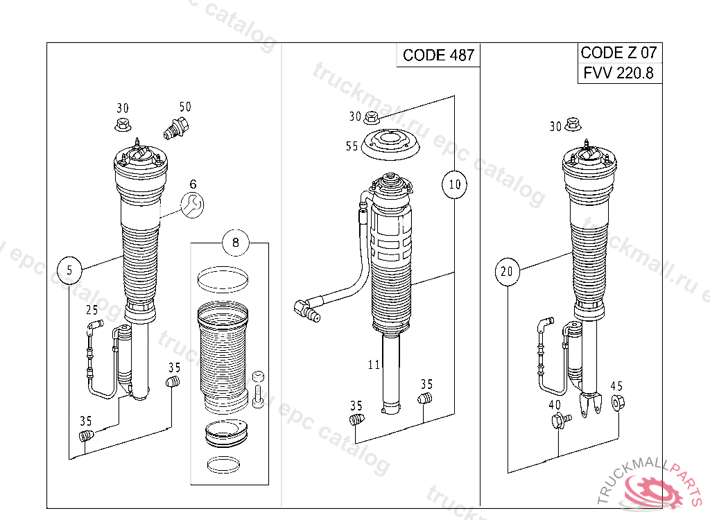 HYDROPNEUMATIC SPRING LEG FRONT RIGHT, A 02435420011130 A 03209920020930803 FASTENING PARTS NOT PART OF DELIVERY SPEC., PLEASE ORDER SEPARATELY