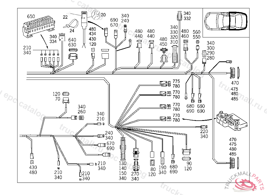 CABLE HARNESS SIDEBAG, STATE IDENT NO. WHEN ORDERING