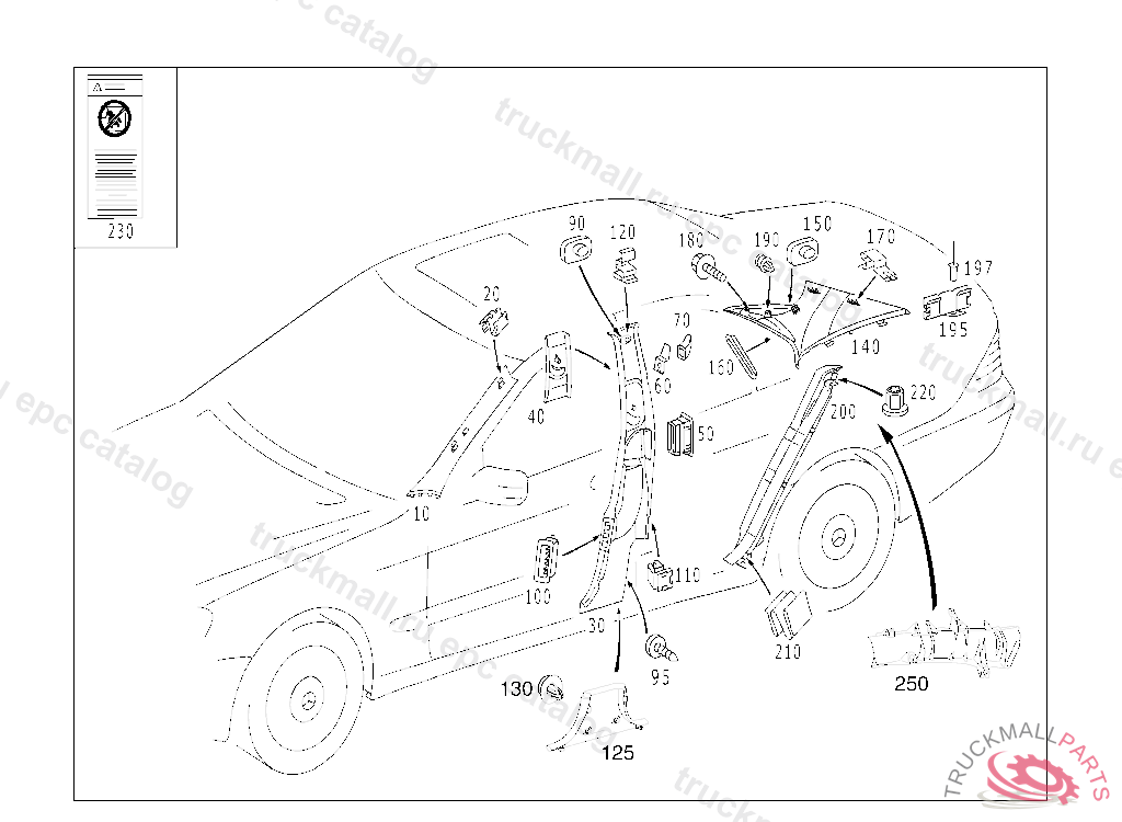 GUIDE SIGN SIDEBAG ON DRIVER DOOR, RIGHT