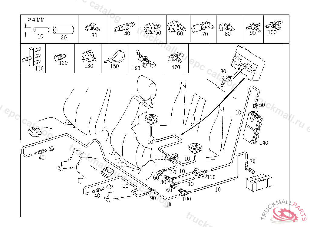 COUPLING , A 585497 F 773609 VACUUM LINE WITH CONNECTOR TO BE CUT OFF TO THE LENGTH REQUIRED, AND TO BE CONNECTED TO EXISTING VACUUM LINE BY MEANS OF 007 997 61 82 HOSE