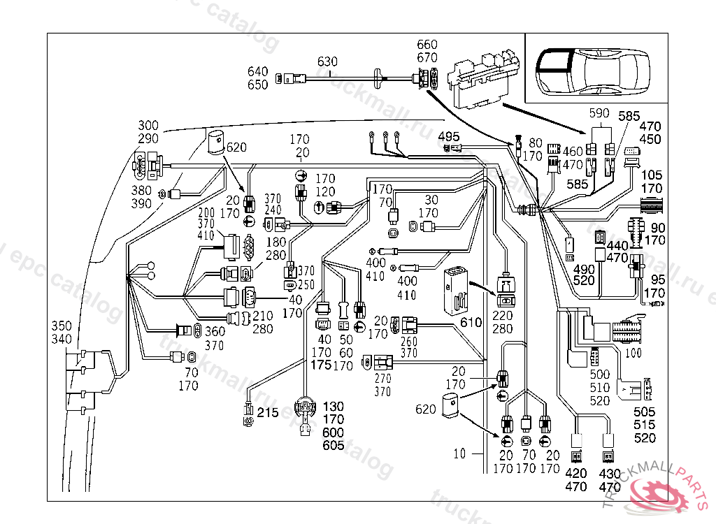INSULATING SLEEVETO 000 546 83 40, A 218852 EXCEPT FOR A 103237 - A 218851 WITH CODE 030 F 190065 EXCEPT FOR F 159752 - F 190064 WITH CODE 030 AS OF IDENT-NO.: FOR HEADLAMP WIRING HARNESS REFER TO TU 54/121, WITH AIR CONDITIONER REFER TO TU 54/485 ALSO INSTALLED ON A 219847