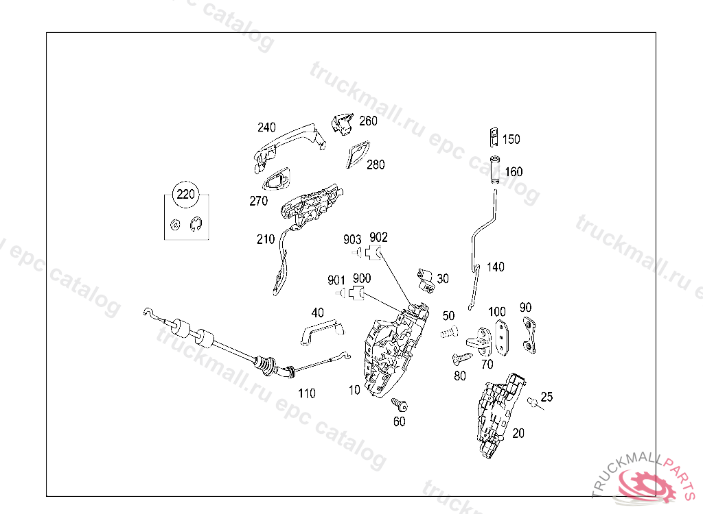 DOOR LOCK RIGHT, FIRST EXHAUST STOCK OF OLD PARTS UP TO IDENT NO. A 25804520080826, Replaced By: A2217305235