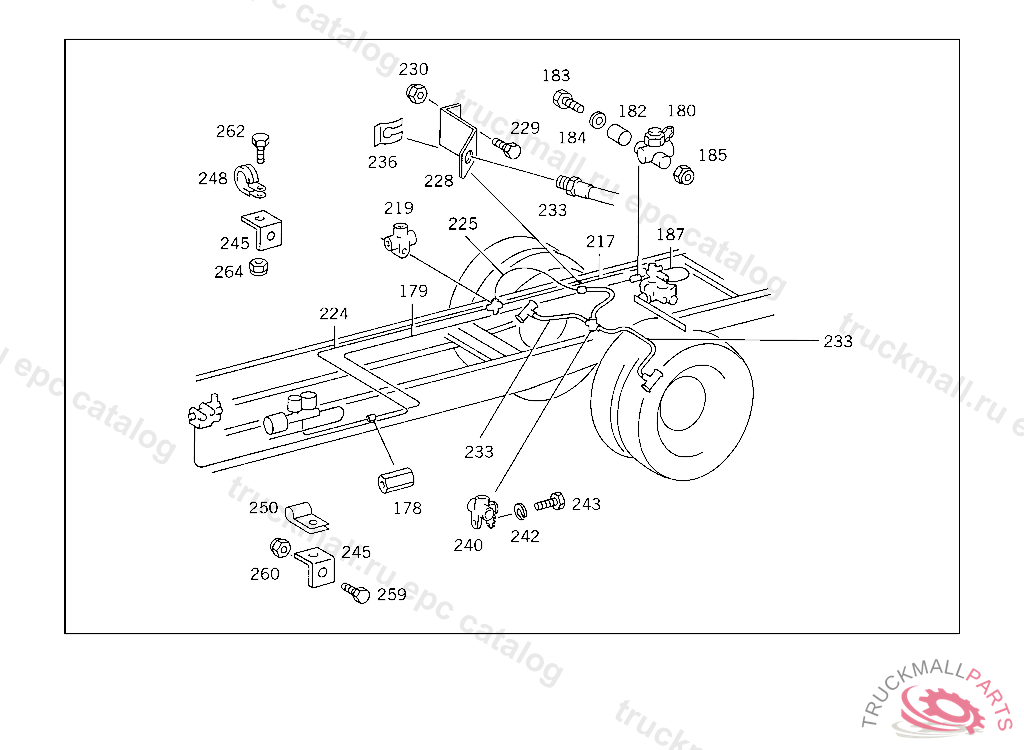 LINE FROM DISTRIBUTOR TO BRAKE HOSE ON REAR AXLE 1100 MM