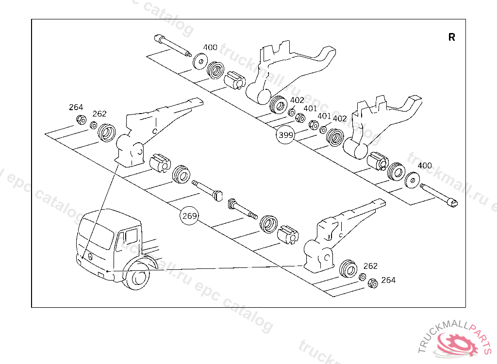 REPAIR KIT CAB SUSPENSION,FRONT, FOR USE WITH SHORT MERCEDES-BENZ CAB5 764324